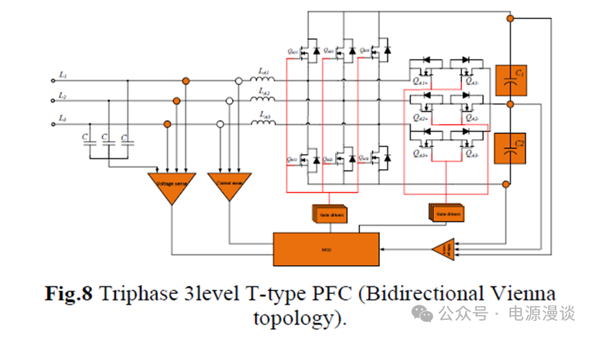 總的來說,為了設(shè)計一個高功率密度的大功率電源 ,單相拓撲并不是好的選擇,因此,必然選擇的是三相拓撲,并基于上面的討論,如果PFC整流器不需要提供雙向功率流,三相維也納PFC在效率、功率因數(shù)和功率密度方面表現(xiàn)出色,當需要雙向功率控制時,如V2G 或V2V,可以通過上述三電平T型拓撲實現(xiàn)。