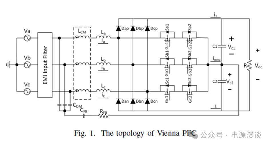 接前述文章,我們所討論的維也納PFC的主功率拓?fù)淙缦聢D1,所示。