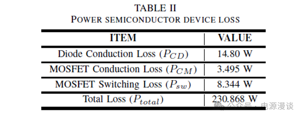 表2顯示了Vienna PFC的樣機(jī)在滿負(fù)荷20kW運(yùn)行條件下?lián)p耗計(jì)算結(jié)果。