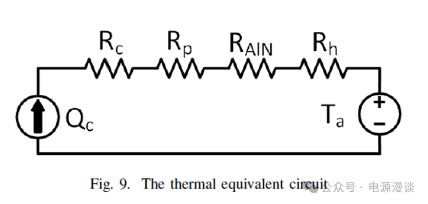 對于散熱器的選擇和熱阻抗設(shè)計(jì),采用一維熱等效電路模型,等效熱阻由 器件封裝熱阻抗、散熱器等的熱阻抗 ,熱界面材料組成,這幾部分熱阻需要達(dá)到充分的值。圖8所示為功率半導(dǎo)體器件的熱結(jié)構(gòu),及其相應(yīng)的一維熱等效電路如圖9所示。