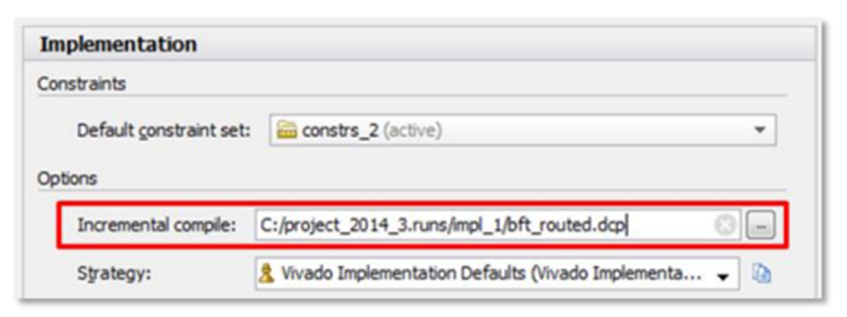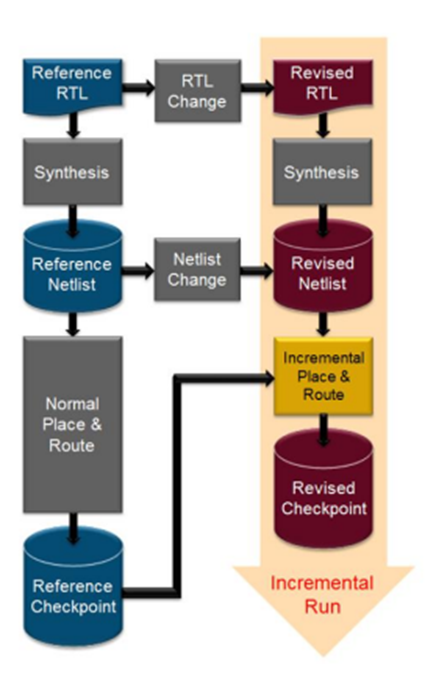 如上圖所示,運(yùn)行增量流程的前提是有一個(gè)已經(jīng)完成布局布線的.dcp 文件,并以此用來(lái)作為新的布局布線的參考。