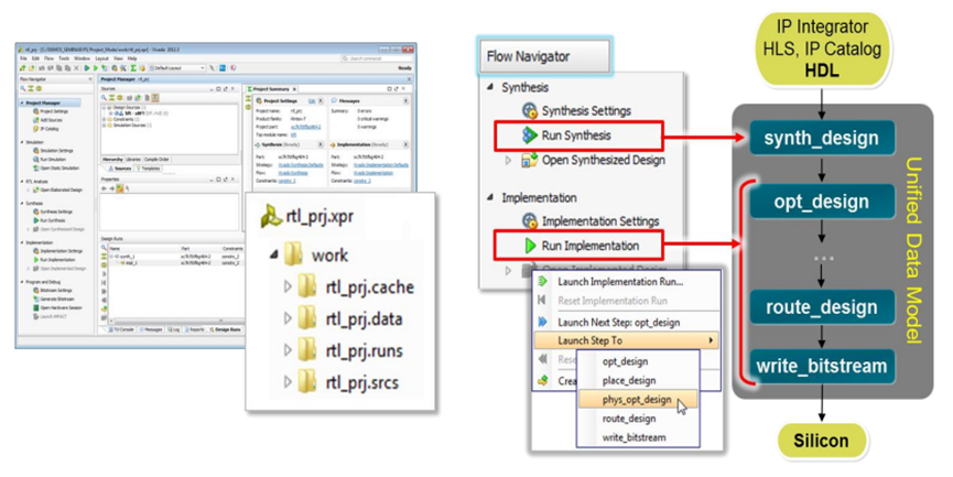 從使用方式上來(lái)講,Vivado 支持工程模式(Project Based Mode)和非工程模式(None Project Mode) 兩種,且都能通過(guò) Tcl 腳本批處理運(yùn)行,或是在 Vivado 圖形化界面 IDE 中交互運(yùn)行和調(diào)試。