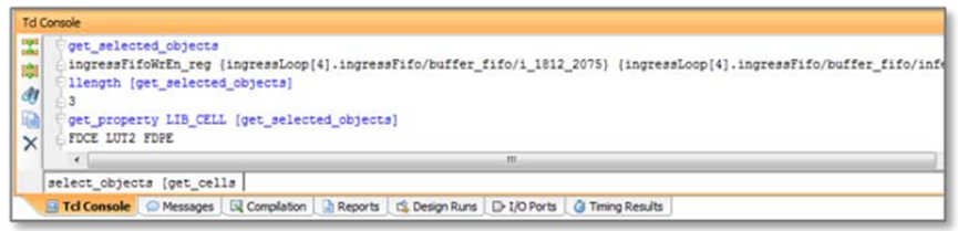 另外,通過(guò)某些 Tcl 命令(例如 show_objects、select_objects 等等)的幫助,我們還可以利用 Tcl Console 與時(shí)序報(bào)告、RTL 和門級(jí)網(wǎng)表以及布局布線后的網(wǎng)表之間進(jìn)行交互調(diào)試,極大發(fā)揮 Vivado IDE 的優(yōu)勢(shì)。