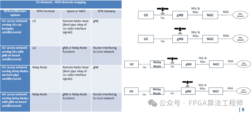 5G NTN架構(gòu)主要存在四種模式,如下圖所示。
