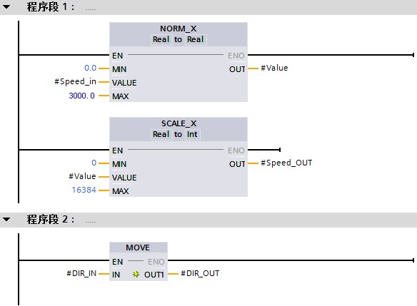 編寫FC1控制程序如圖11所示,程序段1的功能是設(shè)定轉(zhuǎn)速,程序段2的功能是起??刂?。