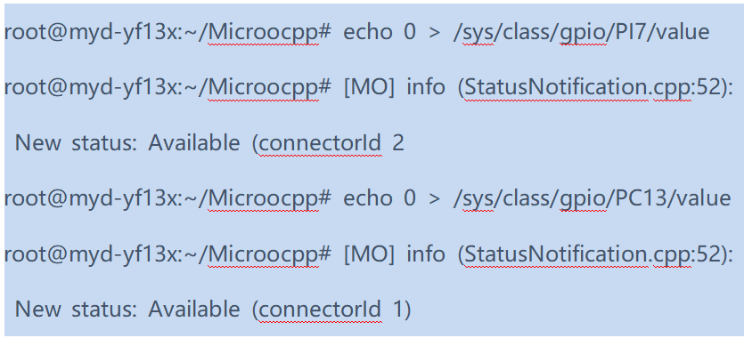 在MYD-YF13X平臺部署MicroOcpp客戶端的過程中,我們充分利用了平臺提供的Linux 6.6.78系統(tǒng)環(huán)境。首先交叉編譯MicroOcpp源碼庫,生成針對ARM架構(gòu)的優(yōu)化可執(zhí)行文件。隨后配置GPIO引腳模擬充電槍連接狀態(tài):使用兩個GPIO口分別代表兩個充電接口的狀態(tài)檢測。