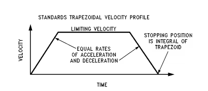 由主微控制器發(fā)送到LM629的軌跡曲線以速度與時(shí)間的關(guān)系繪制。這些被認(rèn)為是速度剖面的原因是每個(gè)樣本間隔都計(jì)算所需的位置。對于勻速,這些期望的位置增量將是相同的每個(gè)樣本間隔,對于加速和減速,期望的位置增量將分別增加和減少每個(gè)樣本間隔。目標(biāo)位置是速度剖面的積分。