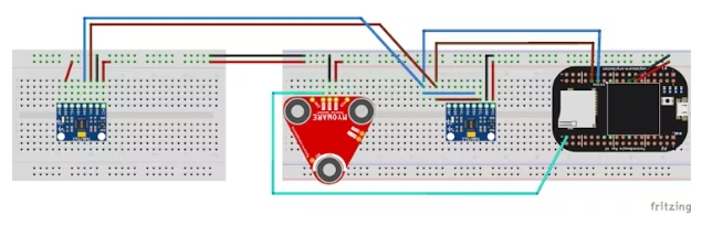這些線路是共享的,所以SDA和SCL是連接到兩個(gè)imu的,就像在Fritzing圖(頂部跳線包)中一樣。