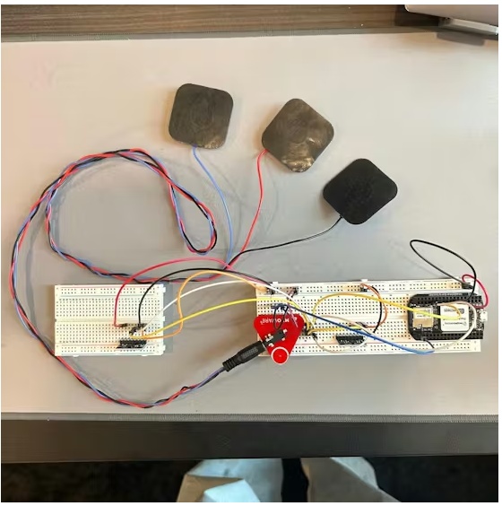 該系統(tǒng)使用安裝在大腿和脛骨上的兩個(gè)imu和一個(gè)MyoWare肌肉傳感器來監(jiān)測股四頭肌的活動(dòng)。PocketBeagle通過I2C讀取IMU數(shù)據(jù),并通過模擬輸入讀取肌電信號,然后將所有數(shù)據(jù)發(fā)送到瀏覽器儀表板。用戶界面通過實(shí)時(shí)圖形顯示膝蓋角度隨時(shí)間的變化,基本的肌肉活動(dòng),并幫助你跟蹤所有這些指標(biāo)。
