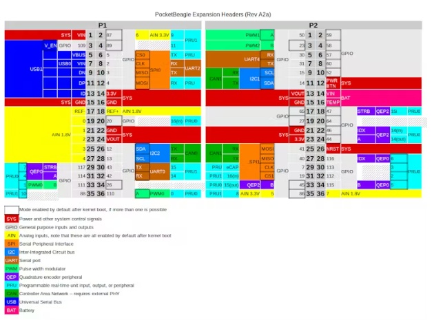 在我的項(xiàng)目中,我使用了PocketBeagle作為微控制器。下面是它的引腳圖。