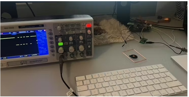 3. 將天線線圈直接放置在貓蓋的RFID讀取器旁邊(通常在隧道中)。當(dāng)繼電器激活時(shí),RFID模塊發(fā)出134.2 kHz的載波,阻止貓蓋讀取你的貓的微芯片。
