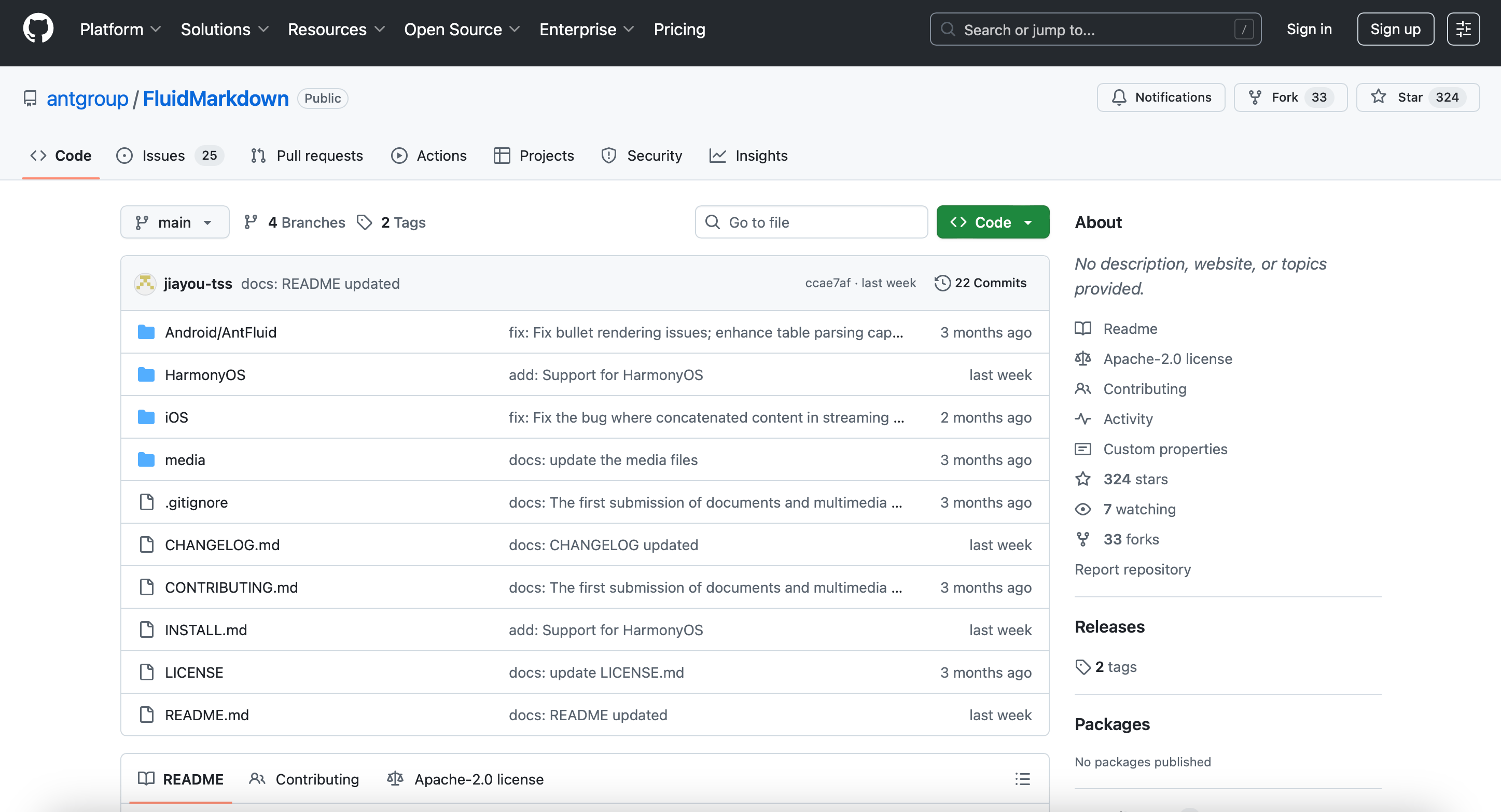 開發(fā)者可以登錄“GitHub”官網(wǎng),首頁搜索“FluidMarkdown”獲取資源。