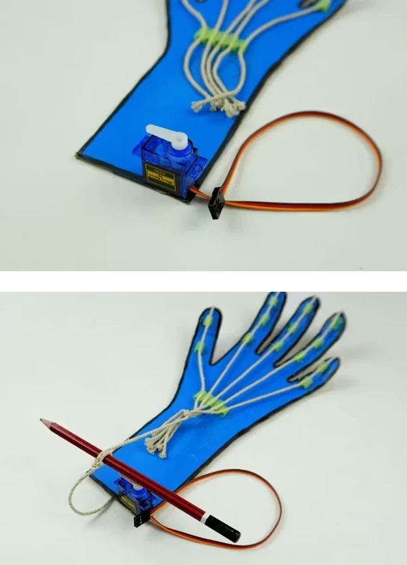 彎曲你的手臂來移動伺服電機(jī)。這是真實(shí)世界中假肢的工作原理。