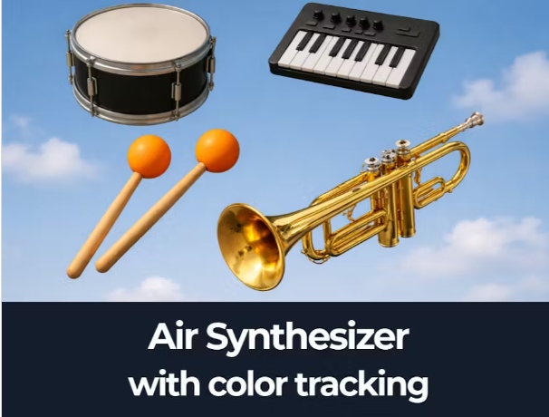 建立一個空氣合成器,使用實時顏色跟蹤演奏樂器。移動一個彩色的球通過相機上不同的區(qū)域,每個區(qū)域觸發(fā)不同的合成器音符。在飛行中變換樂器——從鋼琴到鼓等等。