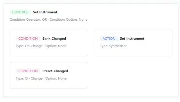 ?動作(合成器):命令=設(shè)置儀器,分配銀行和預(yù)設(shè)變量