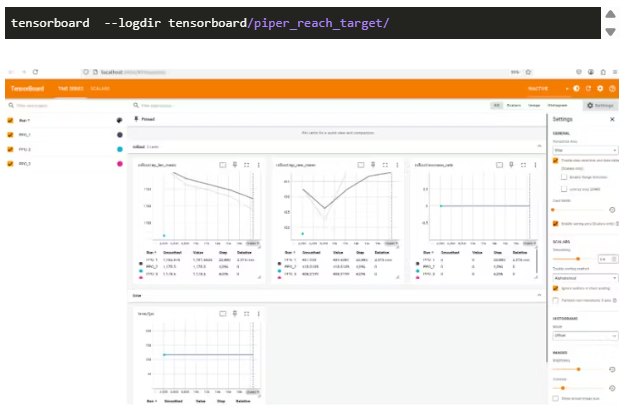 這個(gè)存儲(chǔ)庫(kù)包含Piper RL的簡(jiǎn)單演示代碼,展示了如何使用Piper RL來(lái)訓(xùn)練一個(gè)簡(jiǎn)單的任務(wù):到達(dá)目標(biāo),該任務(wù)要求Piper的夾持器的中心達(dá)到指定的目標(biāo)位置,而不要求Piper的末端執(zhí)行器的結(jié)束姿勢(shì),通過(guò)簡(jiǎn)單的獎(jiǎng)勵(lì)函數(shù)實(shí)現(xiàn)。該存儲(chǔ)庫(kù)提供了兩個(gè)模擬器下的訓(xùn)練示例:Mujoco和Genesis。
