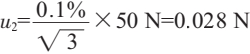 標準測力砝碼檢定證書給出的最大力值相對誤差為±0.1%,估計為均勻分布,取包含因子k=√3。在測量點50 N處,標準不確定度為: