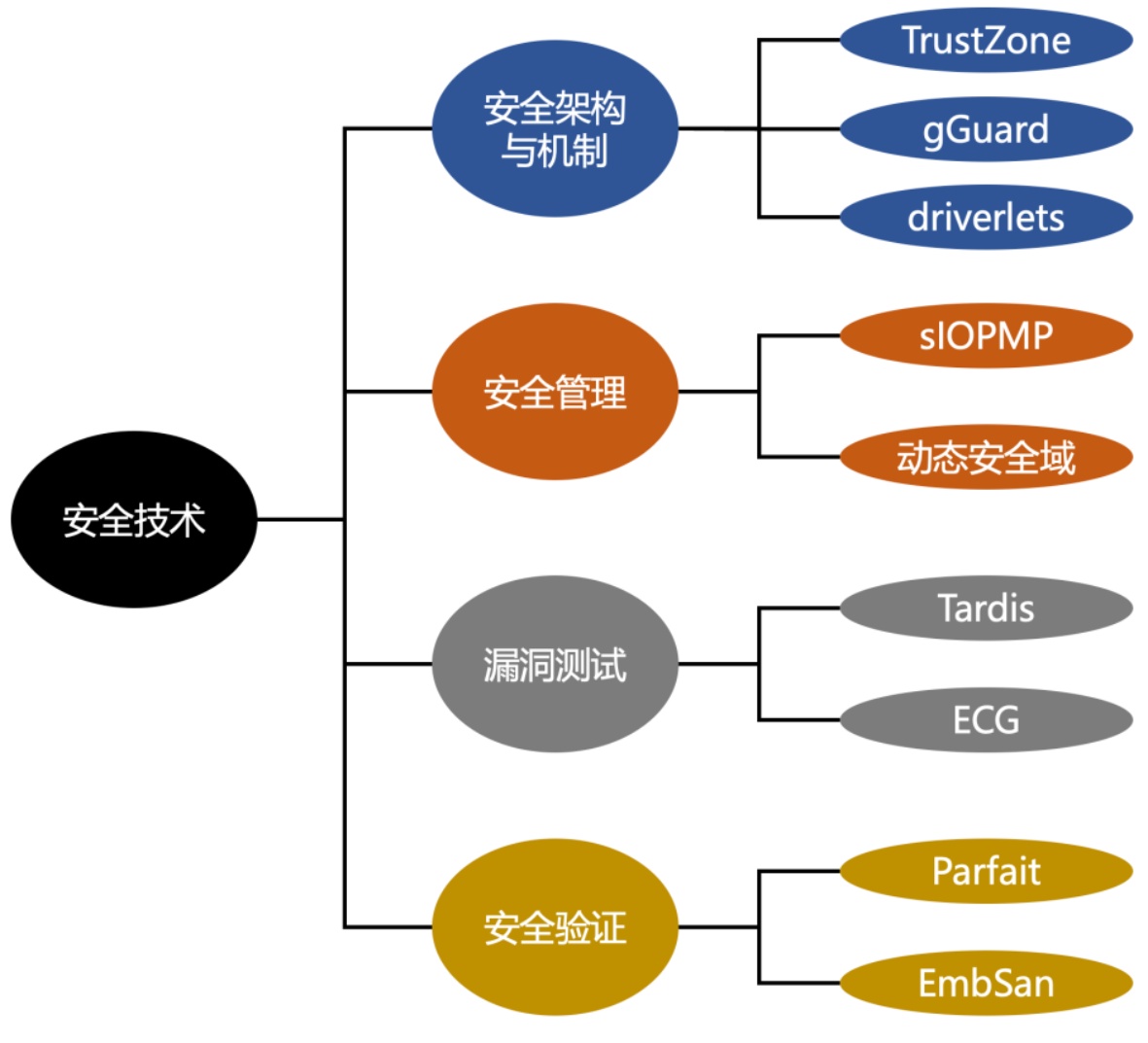 嵌入式操作系統(tǒng)廣泛應用于航空航天、工業(yè)控制、智能交通等關(guān)鍵領(lǐng)域,其安全性直接關(guān)系到系統(tǒng)的穩(wěn)定運行和數(shù)據(jù)安全。隨著物聯(lián)網(wǎng)和人工智能技術(shù)的發(fā)展,嵌入式系統(tǒng)面臨的安全威脅日益復雜多樣,如漏洞利用、數(shù)據(jù)泄露、惡意攻擊等。因此,保障嵌入式操作系統(tǒng)的信息安全成為當前研究的熱點和難點。本節(jié)從系統(tǒng)安全架構(gòu)與機制、安全管理機制、漏洞模糊測試、安全檢測與驗證等方面,對近年來國內(nèi)外關(guān)于嵌入式操作系統(tǒng)信息安全的研究進行了分類總結(jié),如圖2所示。