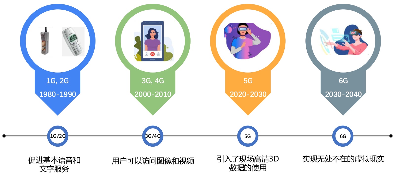 圖2. 從語(yǔ)音到虛擬現(xiàn)實(shí):1G至6G的移動(dòng)通信革命