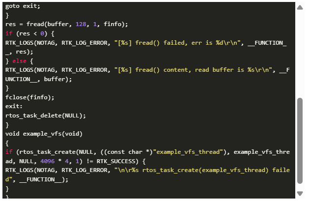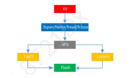 虛擬文件系統(tǒng)(VFS)的底層實(shí)現(xiàn)包括FatFS和LittleFS。VFS提供了fopen、fclose、fwrite、read等常用的文件操作接口。Key-Value (KV)接口就是基于這些常見的文件操作實(shí)現(xiàn)的。