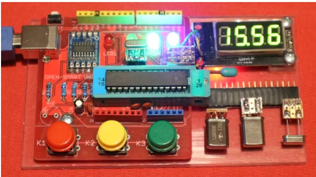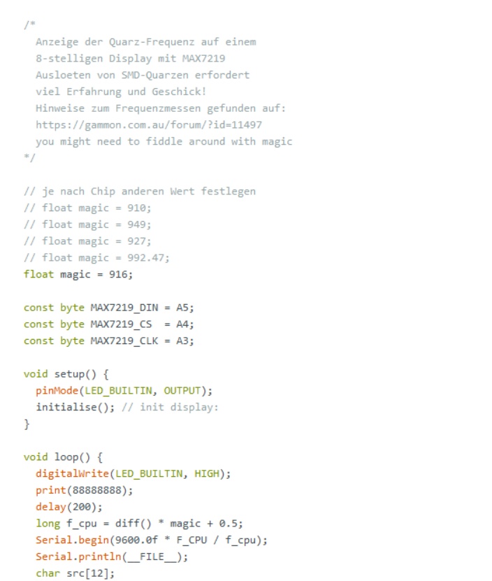 要上傳代碼,你必須插入一個(gè)16兆赫的晶體。在第一次運(yùn)行時(shí),它可能不會(huì)精確顯示16.00。因此,您必須編輯“神奇”數(shù)字,直到它顯示接近16.00?,F(xiàn)在你可以保存文件并檢查周圍的其他晶體。如果將文件上傳到另一臺(tái)ATmega328,則可能必須重復(fù)相同的過程。