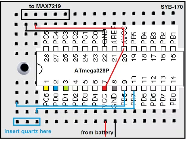 如果您像這樣安排組件,則只需添加幾根電線。當(dāng)然,您需要一種將代碼上傳到獨(dú)立ATmega的方法。