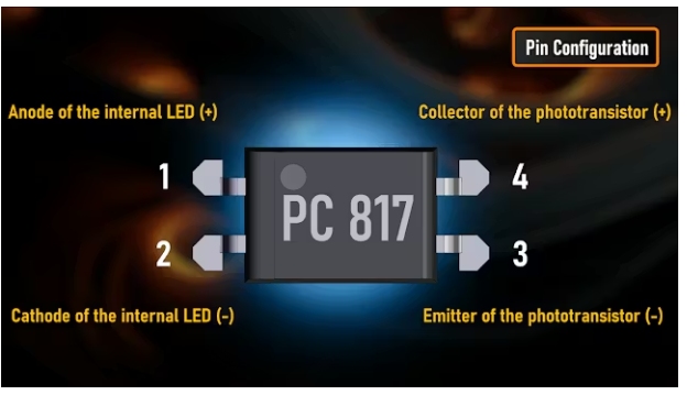 PC817光耦合器是現(xiàn)代電子產(chǎn)品中的關(guān)鍵部件,專(zhuān)為電路中的“信號(hào)隔離”和“傳輸”而設(shè)計(jì)。它由兩個(gè)主要部分組成,在一個(gè)小的,黑色的,4針DIP封裝內(nèi):-一個(gè)紅外LED在輸入端-和一個(gè)光電晶體管在輸出端。兩個(gè)組件彼此面對(duì),但物理上由透明的絕緣屏障分開(kāi),提供完全的電氣隔離在兩邊之間。該器件采用紅外LED和光電晶體管的組合,不僅可以保護(hù)敏感的電子元件免受“高壓”和“電噪聲”的影響,還可以在各種應(yīng)用中保持信號(hào)的完整性和準(zhǔn)確性。引腳1:內(nèi)部LED的陽(yáng)極(+)引腳2:內(nèi)部LED的陰極(-)引腳3:光電晶體管的發(fā)射極(-)引腳4:光電晶體管的集電極(+)