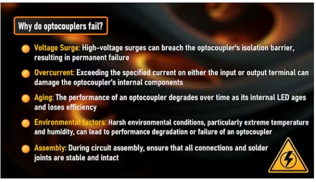 ?電壓浪涌:高壓浪涌會(huì)破壞光耦合器的隔離屏障,導(dǎo)致永久性故障