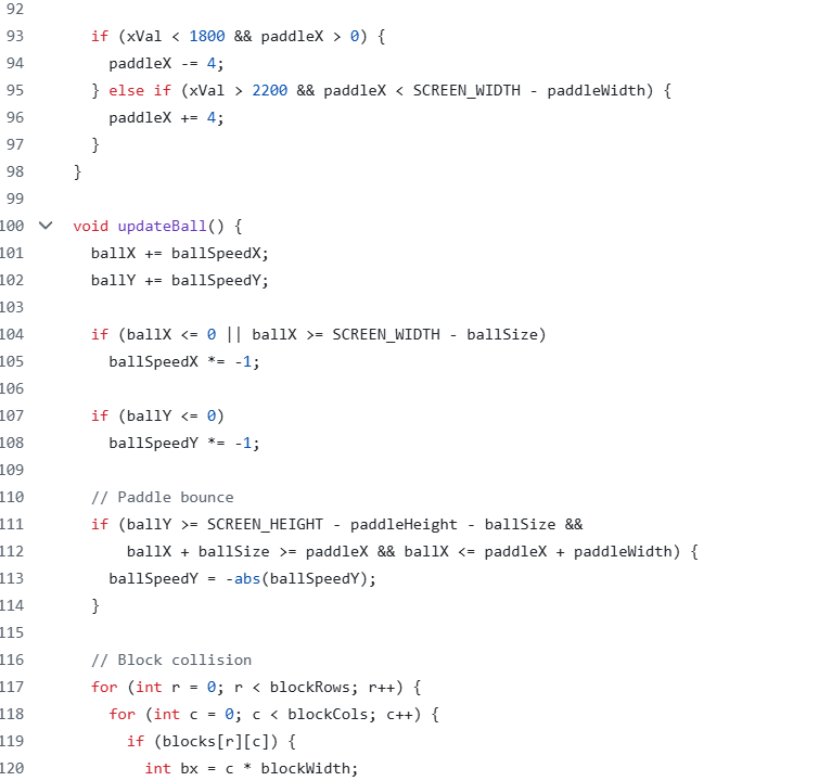 ?校準(zhǔn):如果槳自行移動(dòng),則在updateJoystick()函數(shù)中調(diào)整xVal閾值。