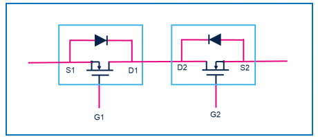 圖 4:在B2B配置中的兩個(gè) N 溝道 MOSFET