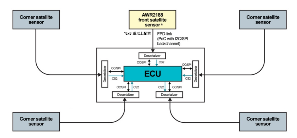 AWR2188 展現(xiàn)了極強(qiáng)的架構(gòu)適應(yīng)性。它既支持傳統(tǒng)的邊緣架構(gòu)(在傳感器本地處理數(shù)據(jù)),也完美兼容正在興起的衛(wèi)星雷達(dá)架構(gòu)。在衛(wèi)星拓?fù)渲?,AWR2188 采集的高分辨率原始數(shù)據(jù)通過(guò) CSI-2 接口連接至串行化器件(如 TI 的 FPD-Link 系統(tǒng)),直接流式傳輸至中央 ECU。這種集中處理方式允許系統(tǒng)運(yùn)行更先進(jìn)的感知算法,將雷達(dá)點(diǎn)云與攝像頭、激光雷達(dá)數(shù)據(jù)進(jìn)行有機(jī)融合,構(gòu)建出更全面、細(xì)致的環(huán)境視圖。