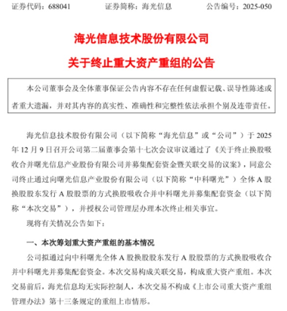 12月9日,海光信息技術(shù)股份有限公司(以下簡稱“海光信息”)與曙光信息產(chǎn)業(yè)股份有限公司(以下簡稱“中科曙光”)同步宣布終止換股吸收合并及配套募資計(jì)劃。該交易受“市場環(huán)境較籌劃之初發(fā)生較大變化”影響,最終因?qū)嵤l件不成熟而終止,雙方表示后續(xù)仍將保持產(chǎn)業(yè)協(xié)同合作。實(shí)際上,雖然海光信息與中科曙光都間接或者直接與中國科學(xué)院計(jì)算所相關(guān),且兩家公司在產(chǎn)業(yè)鏈上的協(xié)同效應(yīng)較強(qiáng),但是在兩家公司宣布開展合并計(jì)劃之后和終止合并之前,兩家公司的股價(jià)都出現(xiàn)了大幅的上漲,均被行業(yè)看成人工智能時(shí)代的重要算力芯片和解決方案提供商而影響了合并。