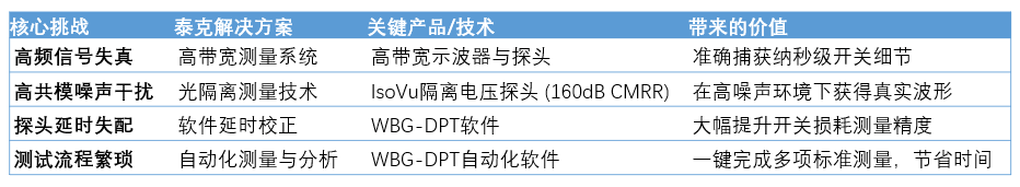 下表概括了泰克解決方案如何應(yīng)對核心挑戰(zhàn):