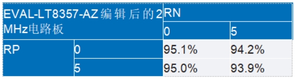 表1.配備不同柵極電阻的LT8357 2 MHz升壓轉(zhuǎn)換器的效率比較:12 VIN至24 VOUT,2 AOUT。