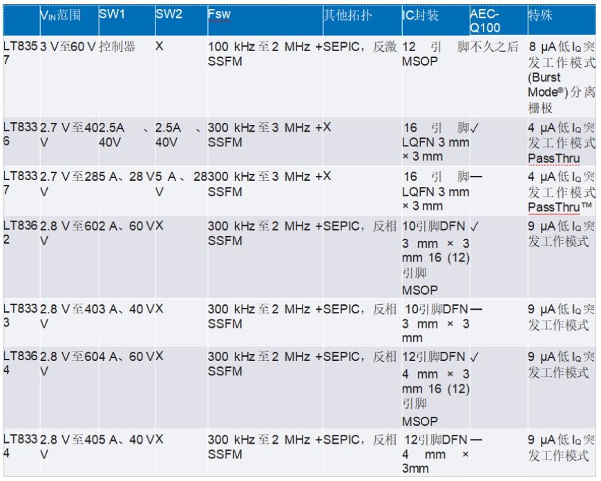 LT8357升壓控制器是一款功能豐富的產(chǎn)品,專為低輻射而設(shè)計(jì),而且仍保持易于操作的特性。10引腳IC既不會(huì)過于復(fù)雜,也不會(huì)因?yàn)檫^于簡單而無法設(shè)計(jì)。這款轉(zhuǎn)換器不包含同步開關(guān)等不必要的特性,從而確保精簡設(shè)計(jì)。它具有足夠數(shù)量的特性,可保持高效率和低輻射。這些特性相結(jié)合,再加上易設(shè)計(jì)性,使這款器件成為表2所示的低輻射升壓轉(zhuǎn)換器系列的理想配套產(chǎn)品。
