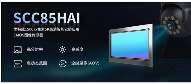 2026年1月8日,中國上海 — 思特威(上海)電子科技股份有限公司(股票簡稱:思特威,股票代碼:688213)近日宣布,全新推出1500萬像素5K高清智能安防應用圖像傳感器——SCC85HAI。SCC85HAI基于思特威先進的SmartClarity®-3工藝技術打造,搭載Lightbox IR®、SmartAOV®2.1及InSensor HDR?等多項優(yōu)勢技術,具備高感度、低噪聲、高動態(tài)范圍等性能優(yōu)勢并支持全時錄像(AOV)。SCC85HAI擁有5120H×3072V的5K高清分辨率,支持16:9和4:3的兩種畫幅比例輸出,能夠滿足監(jiān)控攝像頭對戶外大范圍遠距離場景中影像清晰度和畫面視野的升級需求。