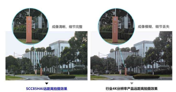在邊防、林區(qū)等戶外大范圍遠距離安防監(jiān)控場景中,傳統(tǒng)4K分辨率的圖像傳感器容易出現(xiàn)遠處成像模糊、細節(jié)丟失等問題。SCC85HAI擁有1500萬像素的5K高清分辨率,可顯著提升成像畫面的清晰度,在搭配長焦鏡頭拍攝戶外遠距離場景時,能夠幫助監(jiān)控攝像頭捕捉到更清晰完整的圖像細節(jié)信息。