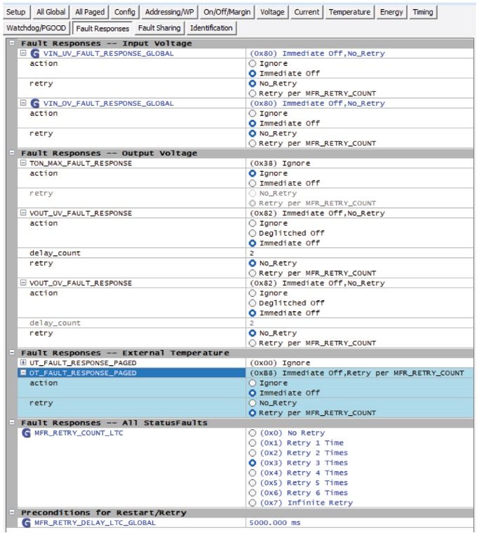 數(shù)據(jù)中心規(guī)范要求具備穩(wěn)健的通信接口并支持PMBus協(xié)議。作為一款符合PMBus標(biāo)準(zhǔn)的器件,這款PSM遵循行業(yè)標(biāo)準(zhǔn),可與現(xiàn)有系統(tǒng)管理平臺無縫集成。其狀態(tài)監(jiān)測和控制功能可通過標(biāo)準(zhǔn)PMBus命令使用,而且支持LTpowerPlay®以簡化配置。因此,設(shè)計(jì)團(tuán)隊(duì)可以離線定義寄存器設(shè)置,如電壓軌、限值和時(shí)序,然后將其直接寫入EEPROM,從而顯著縮短開發(fā)時(shí)間。此外,這款PSM的雙向FAULTB引腳允許多個(gè)器件根據(jù)需要共享或隔離故障線路,有助于實(shí)現(xiàn)靈活的故障管理??傮w而言,相較于純模擬解決方案,數(shù)字化控制能力(包括伺服調(diào)整和時(shí)序控制)為高級電源管理的實(shí)現(xiàn)提供了更高效的途徑。