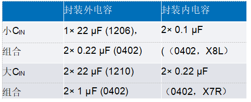 如果增加輸入電容以抑制振鈴,可以改善開關(guān)的不穩(wěn)定性。相較于小CIN組合,大CIN組合的總電容值翻倍。CIN越接近開關(guān)的頂部,改善幅度就越大。因此,最好增加封裝內(nèi)電容的值。在我們的案例中,兩個0.1 μF(0402、X8L)電容增加到0.22 μF(0402、X7R)(見表1)后,開關(guān)變得穩(wěn)定(見圖7的下方波形)。