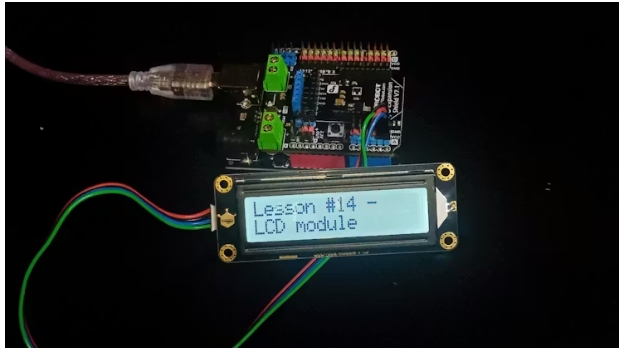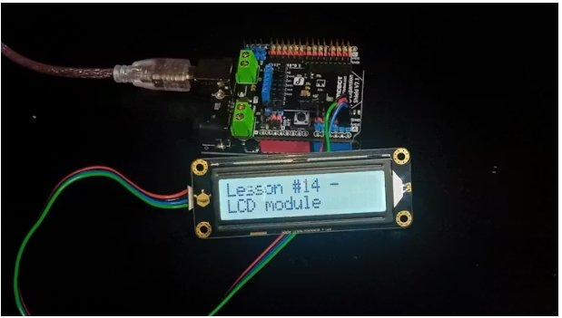 如果所有連接都正確無(wú)誤,您應(yīng)該會(huì)在屏幕上看到“第 14 課 - 液晶模塊”這一信息。這就是我們?nèi)〉玫牡谝粋€(gè)成功。