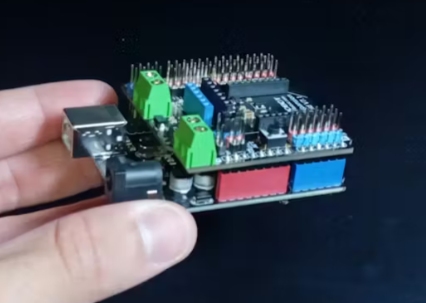 首先將 I/O 擴(kuò)展板安裝到你的 Arduino UNO 上。這個(gè)擴(kuò)展板使得連接模塊變得更加容易,并且還能使所有部件保持整齊有序。
