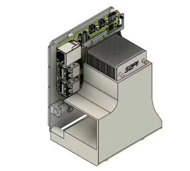 我們將冰柜放置在樹莓派上,然后將兩者與 NVMe 板結(jié)合在一起。圍繞這些組件,我們設(shè)計(jì)了一個(gè)外殼。這個(gè)外殼有兩個(gè)主要用途:首先,它起到支架的作用,使組件保持 90 度的角度;其次,在冰柜風(fēng)扇前方有一個(gè)類似漏斗或管道的部件。