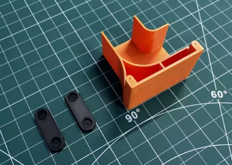 外殼和支架的 3D 網(wǎng)格文件已成功導(dǎo)出。外殼是使用橙色超塑材料進(jìn)行打印的,而支架則是用黑色超塑材料打印的。