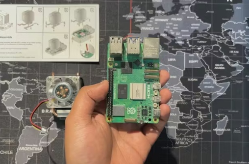 我們按照附帶的說明完成了散熱器的組裝,并將其用金屬固定支架安裝在了 Raspberry Pi 5 上。RGB 風(fēng)扇直接連接到 Pi 內(nèi)置的風(fēng)扇接口,使得安裝過程既簡單又干凈。
