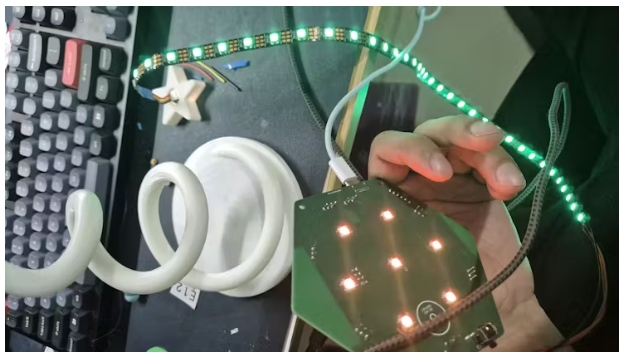 但是,在這里,“沒(méi)有計(jì)劃能在與敵人初次接觸時(shí)幸存下來(lái)”這句話(huà)的含義得到了完美的體現(xiàn),因?yàn)槲业?PCBWay 貨物由于海關(guān)原因被聯(lián)邦快遞滯留了。所以不得不臨時(shí)應(yīng)變。于是我查看了我的庫(kù)存,找到了一些舊的定制 PCB 板,我用它們作為我于 2024 年 11 月初和 2025 年 4 月制作的“艾拉警報(bào)”項(xiàng)目的概念驗(yàn)證原型。從技術(shù)上講,我正在將廢品變成黃金。所以它配備了 esp32 和 LED。但我認(rèn)為僅靠這些還不夠,因?yàn)檫@次競(jìng)賽我還想保留那些關(guān)于調(diào)皮和乖巧的清單、在圣誕樹(shù)下尋找禮物的完整體驗(yàn)。所以這就是我最終的計(jì)劃。
