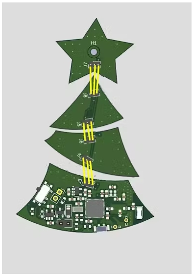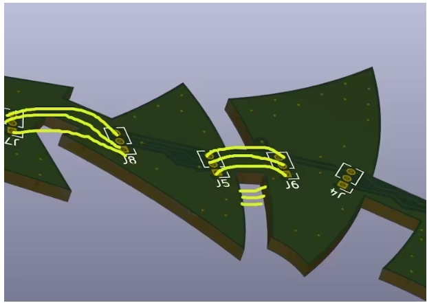 這個(gè)想法是將印刷電路板的連接部件剪開(kāi),去除多余的部分,然后用黃色硅線(xiàn)將它們連接起來(lái),讓它們垂下,這樣就能使它們像單獨(dú)的電路板一樣搖擺,而不是成為一個(gè)整體的印刷電路板。