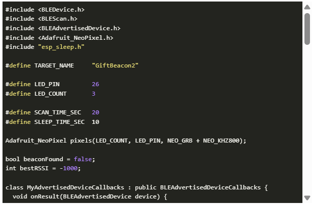 制作一個(gè) 3D 打印的螺旋形圣誕樹(shù),并在螺旋上安裝 LED 燈。BLE 跟蹤器和信標(biāo)將被封裝在圣誕樹(shù)設(shè)計(jì)的外殼中。我可以使用可尋址 LED 將螺旋用作進(jìn)度條,以跟蹤善舉的情況。BLE 信標(biāo)將每隔 10 秒廣播信號(hào)。BLE 跟蹤器將監(jiān)聽(tīng)信標(biāo),并根據(jù) RSSI 值計(jì)算的距離來(lái)控制 LED 的亮度,距離越近速度越快。目前,我將通過(guò)樹(shù)上的按鈕來(lái)控制善舉的進(jìn)度,但如果時(shí)間允許,我將使用 BLE 自身來(lái)控制它。一旦進(jìn)度條完成,樹(shù)頂?shù)男切菍?huì)亮起并激活跟蹤器。然后,這個(gè)人可以去尋找我藏好的禮物的地點(diǎn)。實(shí)際上,禮物的鑰匙被保存在樹(shù)下。