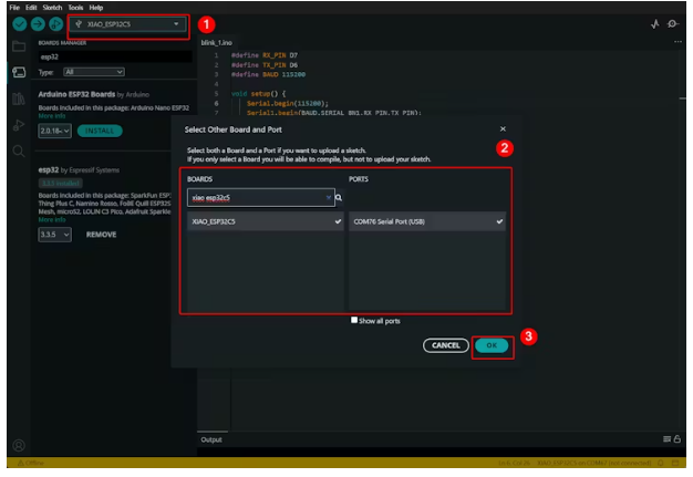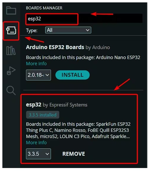 您需要在 Arduino IDE 中打開“板子管理器”,并將 esp32 軟件包更新至 3.3.5 或更高版本,以確保能夠找到 XIAO ESP32-C5。