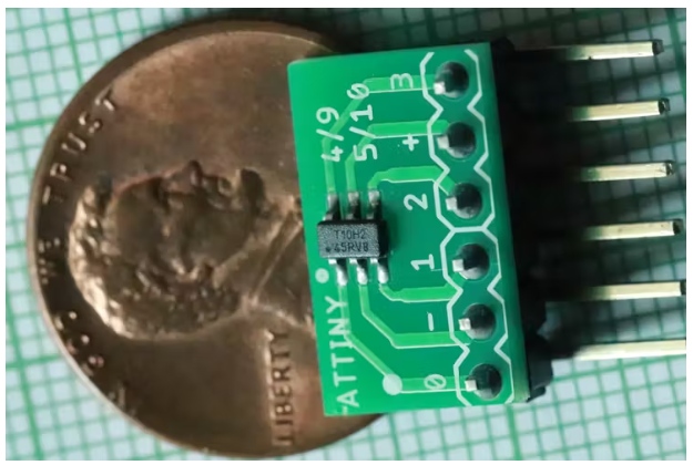 在上述圖片中,ATtiny 芯片是安裝在 SIP6 上的,而非 DIP6 上,這樣可以節(jié)省空間。