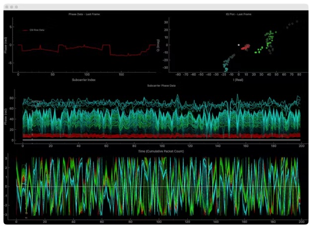 CSI 能夠獲取每個(gè)子載波的振幅和相位信息。當(dāng)人體在房間內(nèi)移動(dòng)時(shí),會(huì)改變這些波的反射和散射方式。通過分析在整個(gè)頻率范圍內(nèi)這些變化的“形態(tài)”,理論上我們能夠檢測(cè)出人體的存在、移動(dòng)情況,甚至特定的姿勢(shì)。